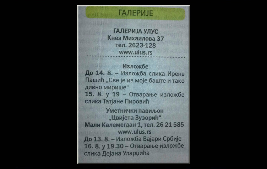 ‘Milena Pavlovic Barili’ Biennale in Pozarevac in 2001.Tatjana lives and works in Belgrade.